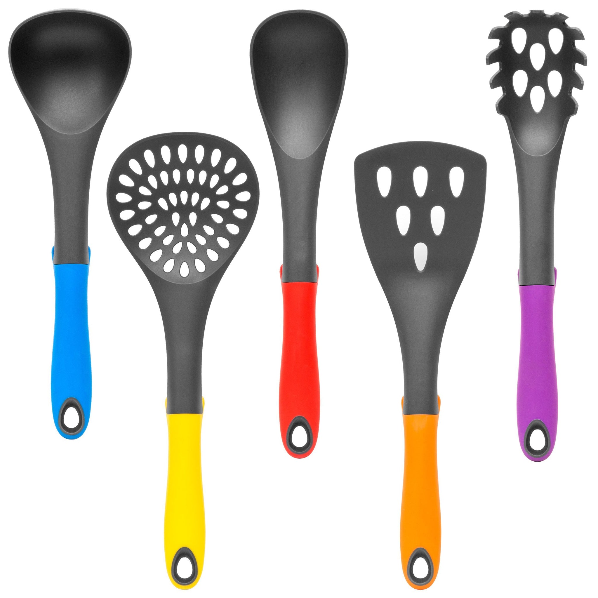 Multi-color, soft grip utensils are made with BPA-free, FDA-grade materials that are also dishwasher safe to ensure durability through the years